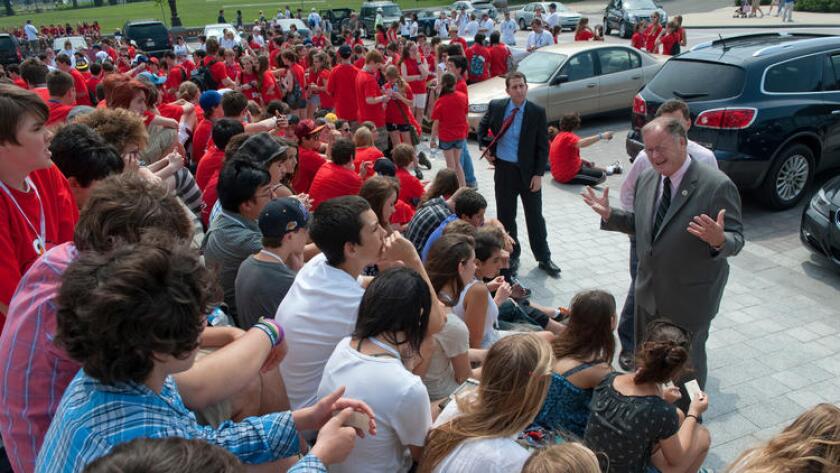 In a nearly 15-minute speech, Reid praised the California delegation for taking him into its fold when he came to Congress and was the only Democrat representing Nevada. He spoke about Boxer’s efforts in preserving the wilderness and protecting Planned Parenthood and their work together with Sen. Dianne Feinstein (D-Calif.) to protect Lake Tahoe.
