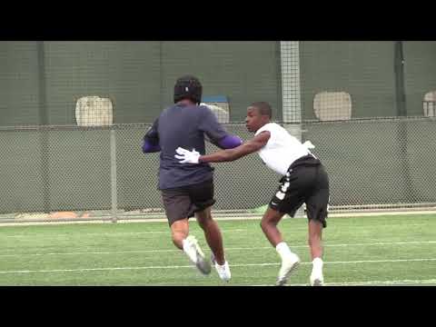A senior guard, Hinson hasn’t played football since he was in sixth grade. But there he was on Saturday wearing protective head gear while playing receiver in a seven on seven competition at El Camino College. You could tell he was just learning, for he had to figure out how to get down field when one of the opposing corners employed aggressive press coverage trying to prevent him from even getting off the line of scrimmage.